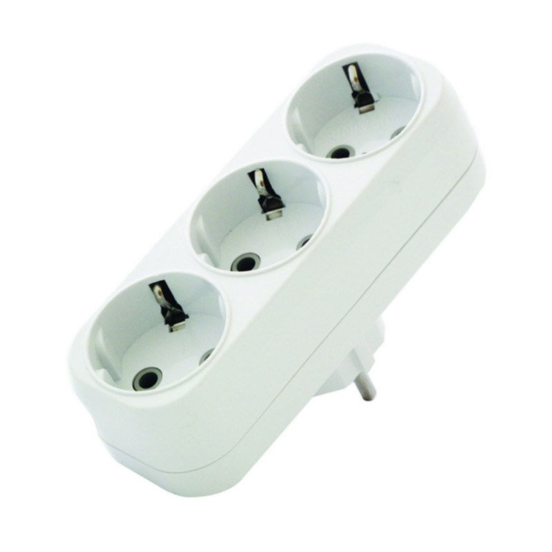 Адаптер применяется для подключения электроприборов с вилкой европейского стандарта к розеткам российского стандарта до 250 В, изготовлен из АБС-пластика бе- лого цвета. Разветвители и/или тройники предназначены для одновременного присоединения одного, двух или трех бытовых приборов к одной розетке двухполюсной электрической сети переменного тока напряжением 220250 В, частотой 50 Гц. Изделия представляют собой двухместный или трехместный блок розеток, совмещенный со штепсельной вилкой, армированные в одном корпусе. Разветвители предназначены для работы при температуре окружающей среды +1 С до + 40 С. Тройник состоит из двух корпусов, изготовленных из АБС-пластика белого цвета, в которых расположены гнездовые контакты розеток, соединенные со встроенной штепсельной вилкой. Два корпуса соединяются винтовой парой: винтайка. В ассортименте представлены различные модели с заземляющим контактом и без и количеством гнезд от двух до трех. Технические характеристики: Наименование параметра Значение Напряжение в сети: 220/250 В Частота тока: 50 Гц Материал корпуса: АБС-пластик