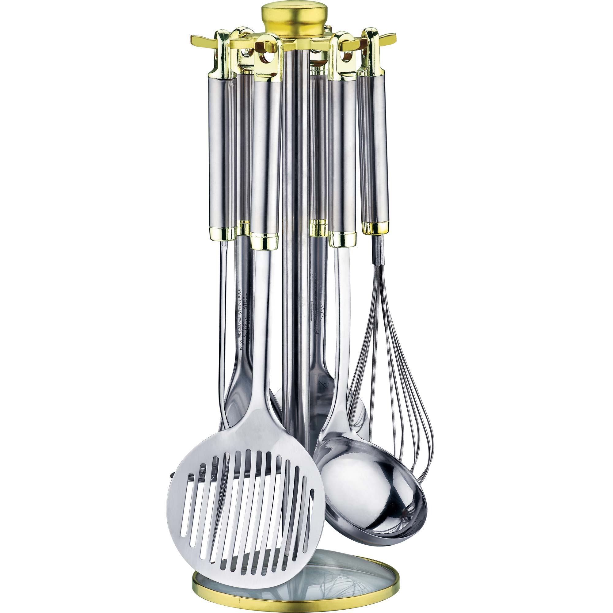 Набор кухонных принадлежностей из 8 предметов Высококачественная нержавеющая сталь Ручки пластмассовые Картофелемялка Вилка Половник Шумовка Венчик Ложка Вешалка Подставка из нержавеющей стали