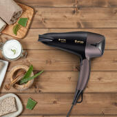 Прибор оснащен технологией Tourmaline Ionic, благодаря которой волосы выглядят ухоженными, гладкими, блестящими и здоровыми. Фен имеет удобную ручку, которая легко складывается и обеспечивает удобное компактное хранение.
