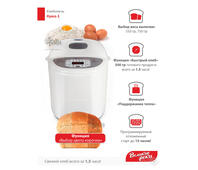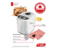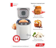 Хлебопечь Кума-1 оснащена удобным интерфейсом и простыми в использовании клавишами. Кроме того, прибор имеет встроенный таймер, благодаря которому можно установить время начала выпекания. С этим прибором вы сможете ощутить вкус горячей французской булки, диетического или мультизернового хлеба, разнообразных кексов.