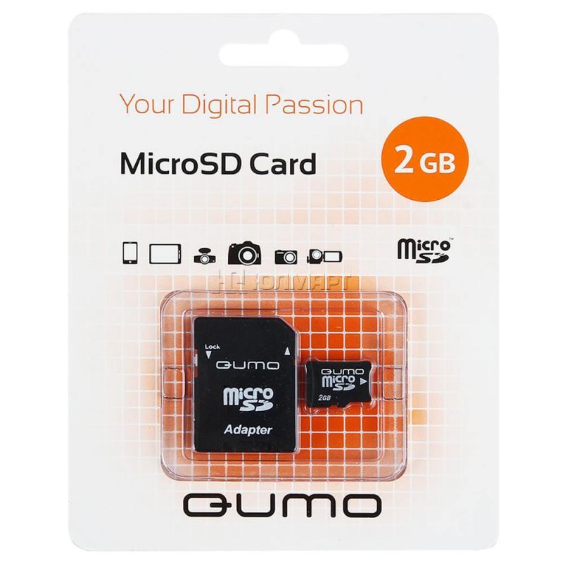 Карта памяти micro SD 2Gb Qumo с адаптером