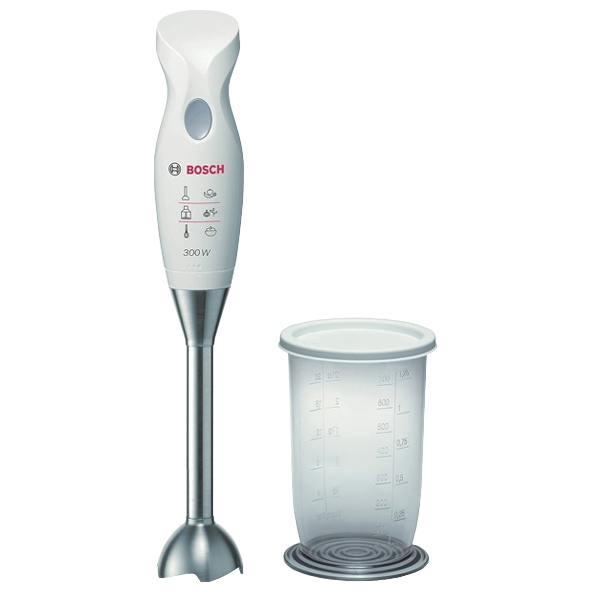 мощность 300 Вт, количество скоростей - 1, погружная часть металл, функция колки льда, мерный стакан с крышкой.