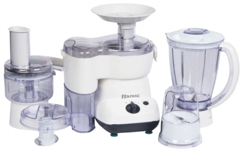 350 Вт, мех. панель, 2 скорости, материал чаши - пластик, насадки: насадка для нарезки картофеля-фри, соковыжималка, шинковка