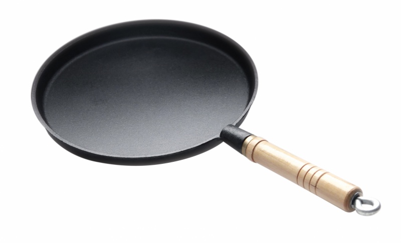 Сковорода чугунная блинная d24см. Камская БЛ240 деревянн.ручка