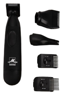 В комплект входят:головка для стрижки волос,головка для бритья,головка для стрижки волос в носу и ушах,2 насадки к головке для стрижки волос.Тип батарей ААА(1,5В),