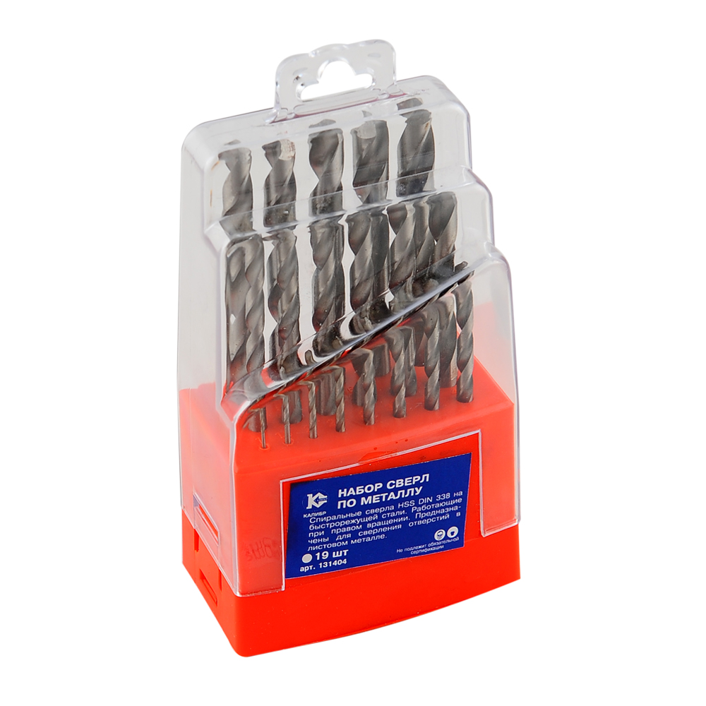 Набор сверл по металлу Калибр (19шт., 1-10мм.) 131404