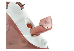 Привлекательно, что утюг может использоваться для вертикального отпаривания. Комплектация дополняется мерным стаканом. Сетевой шнур длиной 1.8 м оснащен шаровым креплением, защищающим от перекручивания. Данное устройство максимально просто в управлении и оснащено стандартным набором функций.