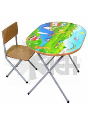 группа 1 (3-4 года), стол 600*450*460 мм, стул 350*275*490 мм, высота сидения 260 мм., цветная столешница