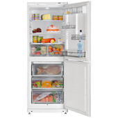 Двухкамерный холодильник Атлант ХМ 4010-022 выполнен в классическом белом цвете. Морозильная камера расположена в нижней части.
