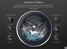 В отличие от обычных стиральных машин, барабан LG обладает широким набором вариантов вращения, максимально адаптированных к различным типам ткани и степени загрязнения белья.