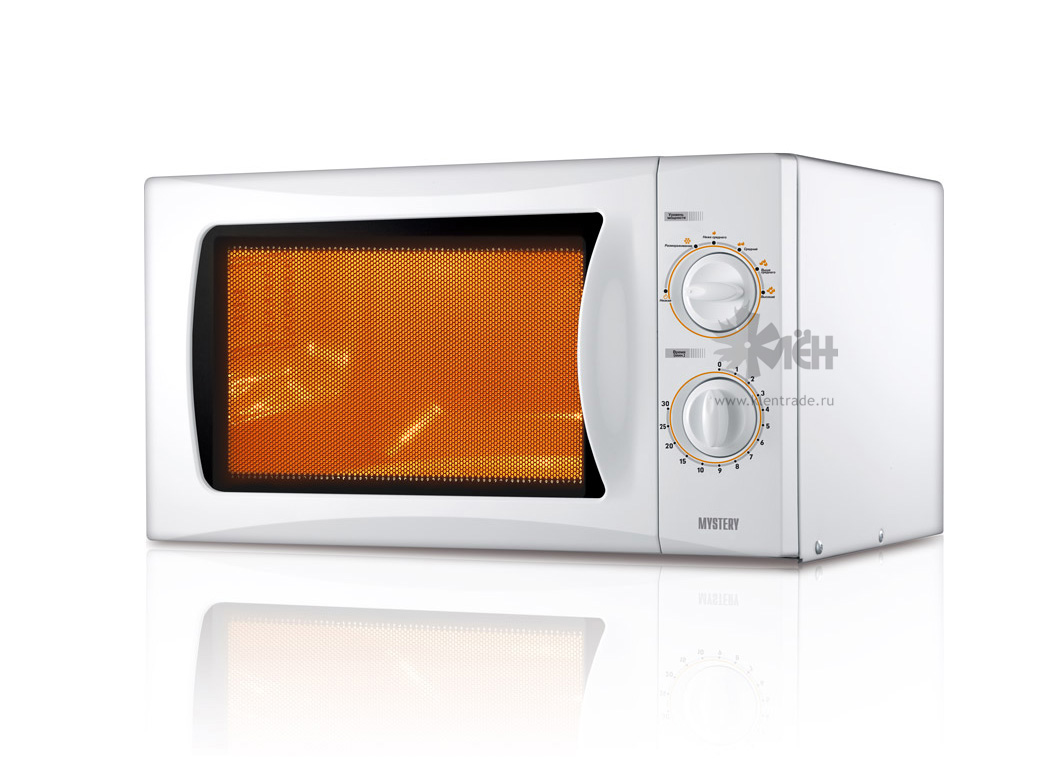 Внутренняя поверхность камеры MYSTERY MMW-2013 выполнена из долговечного эмалированного металла и легко поддается мойке. Микроволновая печь объемом на 20 литров без труда может вместить в себя довольно крупные блюда. В работе управляется проверенным механическим способом, дверца открывается ручкой.