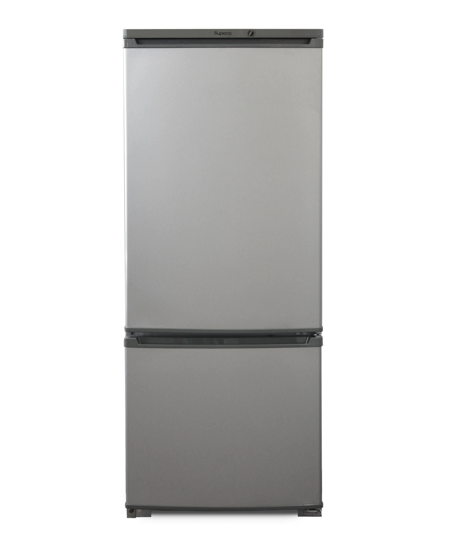 Двухкамерный холодильник Бирюса M151 выполнен в цвете "металлик". Морозильная камера расположена в нижней части.