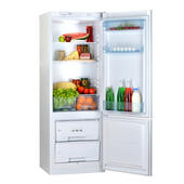 Общий объём холодильника POZIS RK-102А составляет 285 литров, из них 205 приходится на холодильное отделение и 80 на морозильную камеру. Холодильная камера оттаивает автоматически: при каждой остановке компрессора иней, образующийся на задней стенке холодильника, оттаивает, и вода стекает вниз, к компрессору, где испаряется.