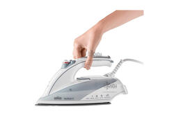 Легкий вес и открытая ручкаЭргономичность и легкий вес обеспечивают комфортное использование. А благодаря открытой ручке, прибор еще удобнее держать в руках, что в свою очередь увеличивает свободу движений. Конструкция продумана для максимального удобства работы с утюгом: открытая форма идеально ложится в ладонь, позволяя вам двигаться свободно и меньше уставать в процессе глажки, а прорезиненное покрытие предотвращает скольжение в руке.