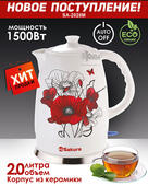 Цветочное решение оформления дизайна чайника SAKURA SA-2028 M принесет только положительные эмоции от пользования прибором. Вместительность электрического помощника на 2 литра позволит успешно соответствовать требованиям большой семьи. Также стоит отметить экологичность этого материала. Приятного вам чаепития!