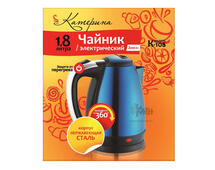 Чайник "Катерина" К-105 выполнен из нержавеющей стали с элементами из пластика, имеет закрытый нагревательный элемент. Блестящий яркий бирюзовый корпус металлической колбы прекрасно стилизует интерьер в лучшую сторону.