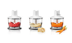 Смешивание и приготовление пюреНравится готовить молочные коктейли, свежее детское питание собственного производства или суп-пюре прямо в кастрюле? Насадка блендера из нержавеющей стали обеспечивает идеальный результат за считанные секунды. А ее уникальный дизайн предотвращает разбрызгивание, заботясь о том, чтобы ни одна капля не упала за пределы кастрюли.
