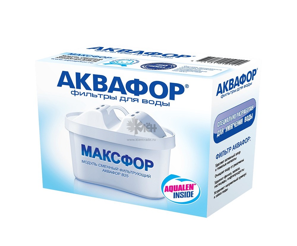 Аквафор В25 (В100-25) полностью удаляет из водопроводной воды даже самые опасные распространеные примеси. По оценкам экспертов, В25 (В100-25) отлично справился с удалением тяжелых металлов и хлорорганических соединений.