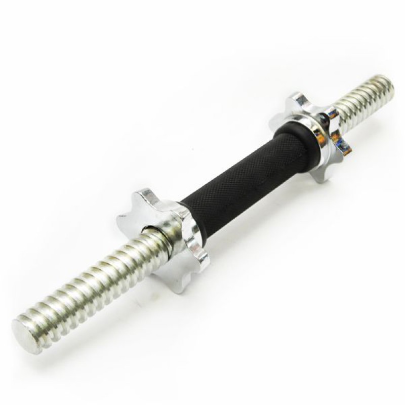 Гриф гантельный хромированный с обрезиненной ручкой. Длина: 40см, d-26мм, замок-гайка - 2шт. Производство: Россия.