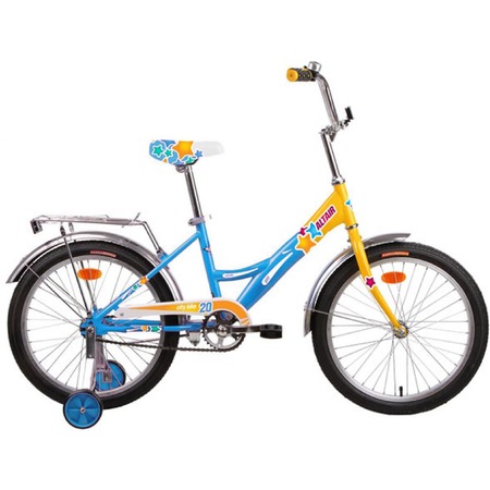 рама:сталь, 1 скорость, складная (13), вилка:жесткая, сталь, тормоз: ножной, система:сталь, обода: алюминий, покрышки: 20x1.95, багажник, желт/син.