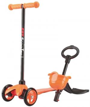 Для самых маленьких с дополнительной сменной ручкой и сиденьем, 3-х кол. - 2 передних полиуретан 120*24мм., 1 заднее полиуретан 70*24мм., платформа 37*11см., сиденье - ударопрочный пластик, возраст 1+