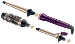 3 сменных насадки: щипцы d 19мм., конические щипцы, термощетка. Нагрев до 220 за 30 сек