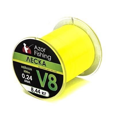 Леска AZOR нейлон V8, 0.24мм., 300м. флуорисцент-желтая 338-925