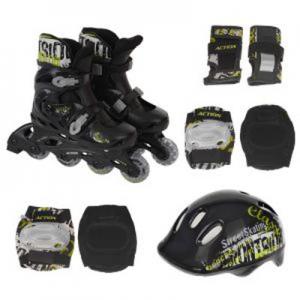 Набор (ролики, защита, шлем) Action PW-120B р.31-34 чёрн./зелён.