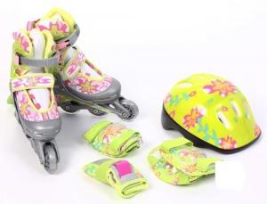 раздвижные, шасси: пластик, подшипник: 608Z, колеса: поливинилхлорид, шлем: материал - пенополистирол с отверстиями для вентиляции головы