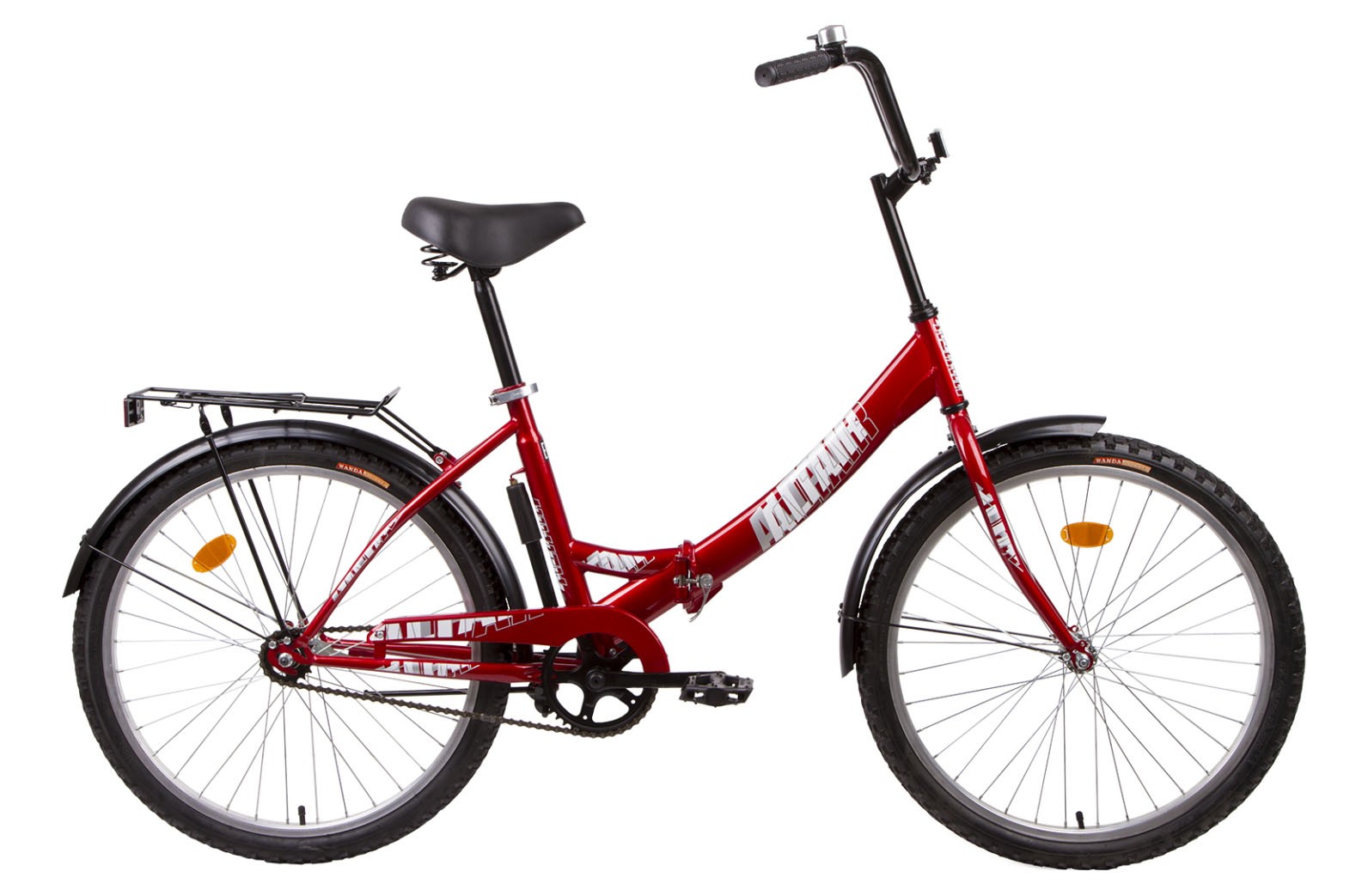 24 1 ск., рама: сталь (16), вилка: сталь, втулки: сталь, обод: алюм.,покрышки Wanda 24x2.125, седло: комфорт, чрн. крылья, звонок, багажник, насос