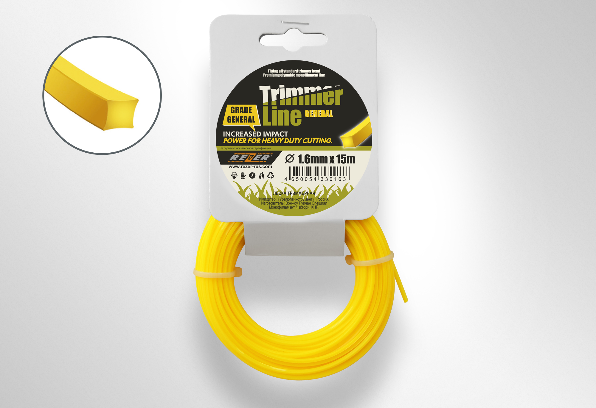 Леска д/триммера Rezer GENERAL 1,6мм*15м КВАДРАТ