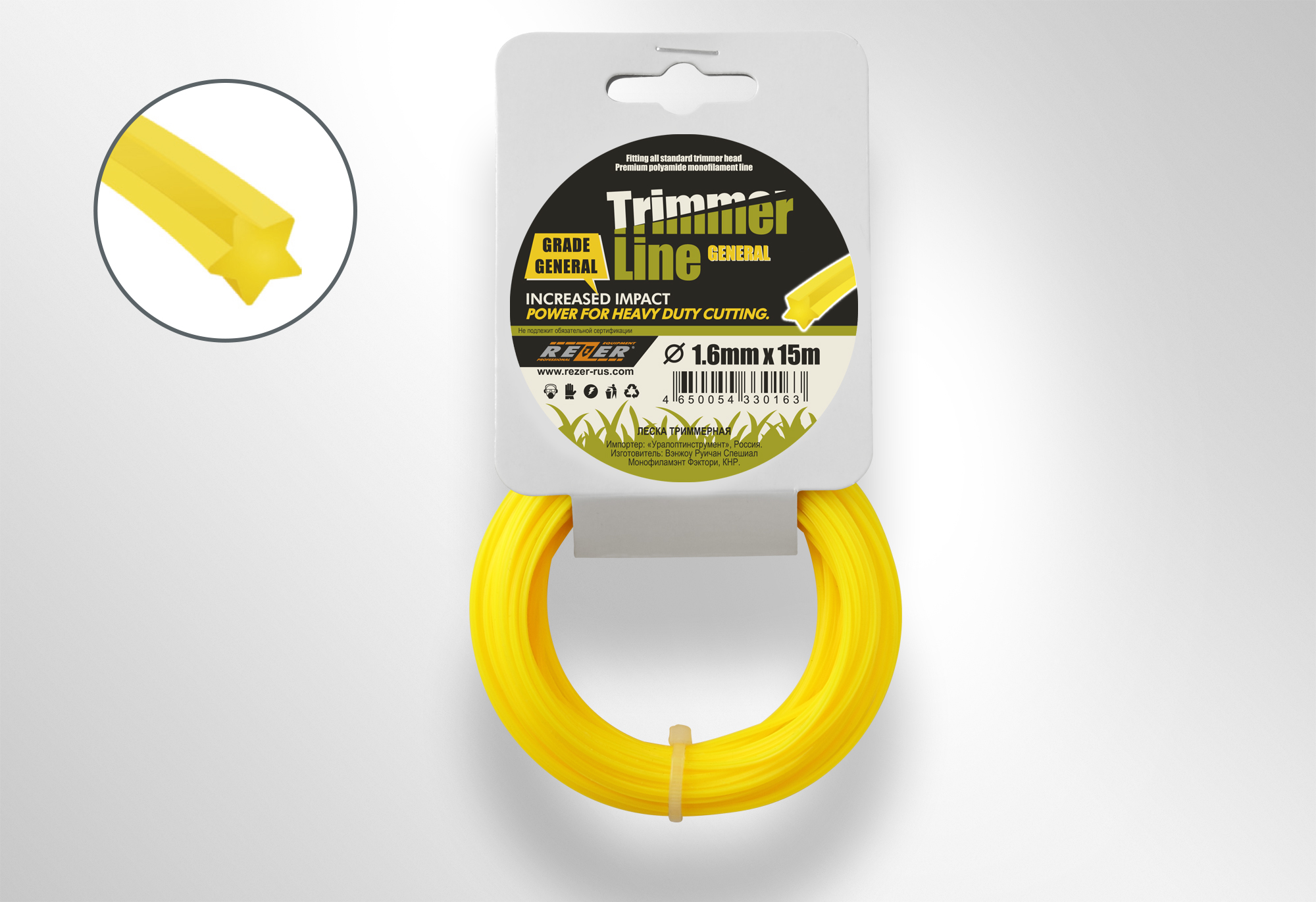 Леска д/триммера Rezer GENERAL 1,6мм*15м ЗВЕЗДА