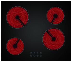 Электрическая независимая варочная поверхность стеклокерамическая, ширина 60 см, 4 зоны ускоренного нагрева, 2 зоны с двойным расширением, сенсорное управление, 4 цифровых дисплея, 9 уровней мощности,