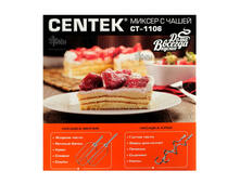 Если вам нужен компактный помощник для взбивания яиц, масла, сливок, то с этими задачами справится CENTEK CT-1106. Прибор имеет кнопки скорости и для извлечения насадок, две насадки венчиков, два крюка для теста.