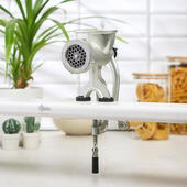Мясорубка Уралочка - легкая, компактная, надежная модель. Не будет лишней на вашей кухне, даже если у вас уже есть электрическая мясорубка. Ведь эту модель просто и быстро собрать и разобрать, если вам нужно приготовить небольшое количество фарша. Удобно использовать на даче, а также в отсутствии электричества. Мясорубка крепится к краю поверхности при использовании и не займет много места при хранении.