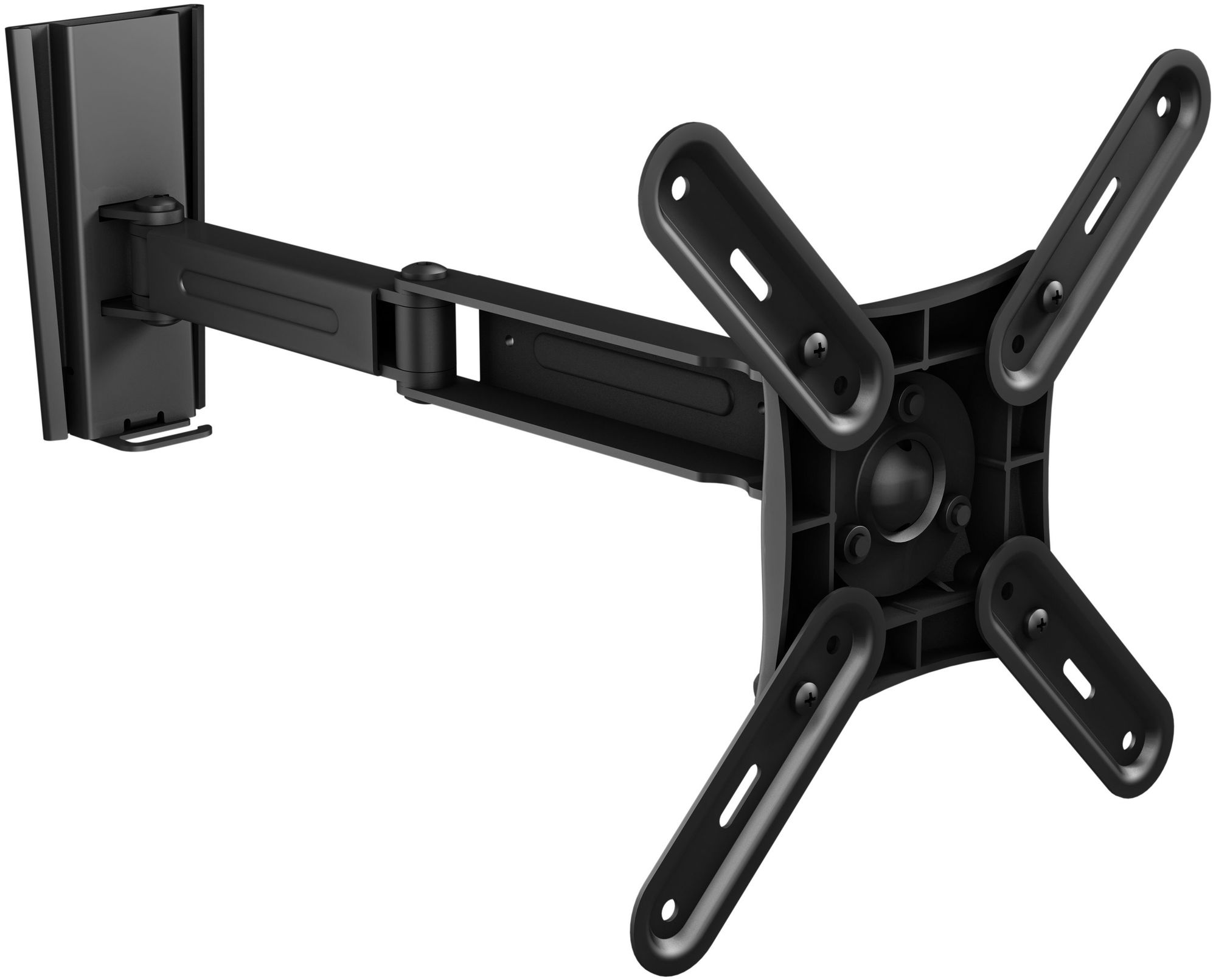 Подходит для большинства ЖК телевизоров от 17 до 37 дюймов (43 - 94 см) со схемой крепежных отверстий VESA 75х75, 100х100, 100х200, 200х200 мм 3D - вращение, 5 степеней свободы, угол наклона 15, угол поворота 180, вращение 360 Поворачивается и выдвигается на расстояние до 400 мм и компактно складывается до 100 мм от стены