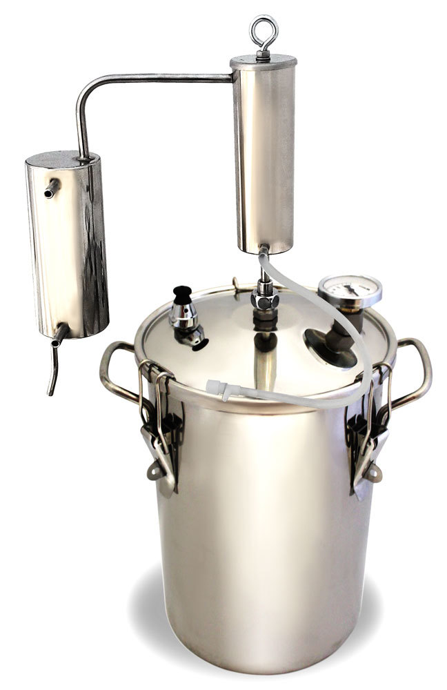 14л, термометр, клапан избыт. давления, разборный сухопарник, слив сивушных масел, охладитель, сетка-контейнер для ароматизации, съемная крышка
