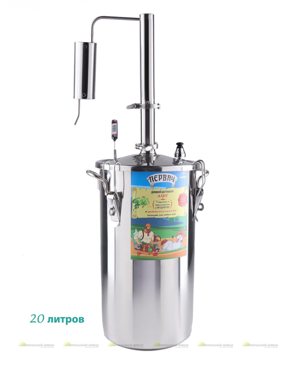 20л, термометр, клапан избыт. давления, разборный сухопарник, слив сивушных масел, охладитель, сетка-контейнер для ароматизации, съемная крышка