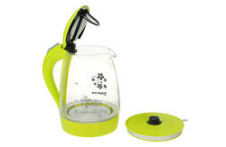 Корпус электрического чайника SAKURA SA-2710GR выполнен из термостойкого стекла. Несомненно привлекает к себе внимание, благодаря оригинальному исполнению, дизайн с цветочным рисунком с эффектными зелёными вставками выглядит безупречно, даже в выключенном состоянии.