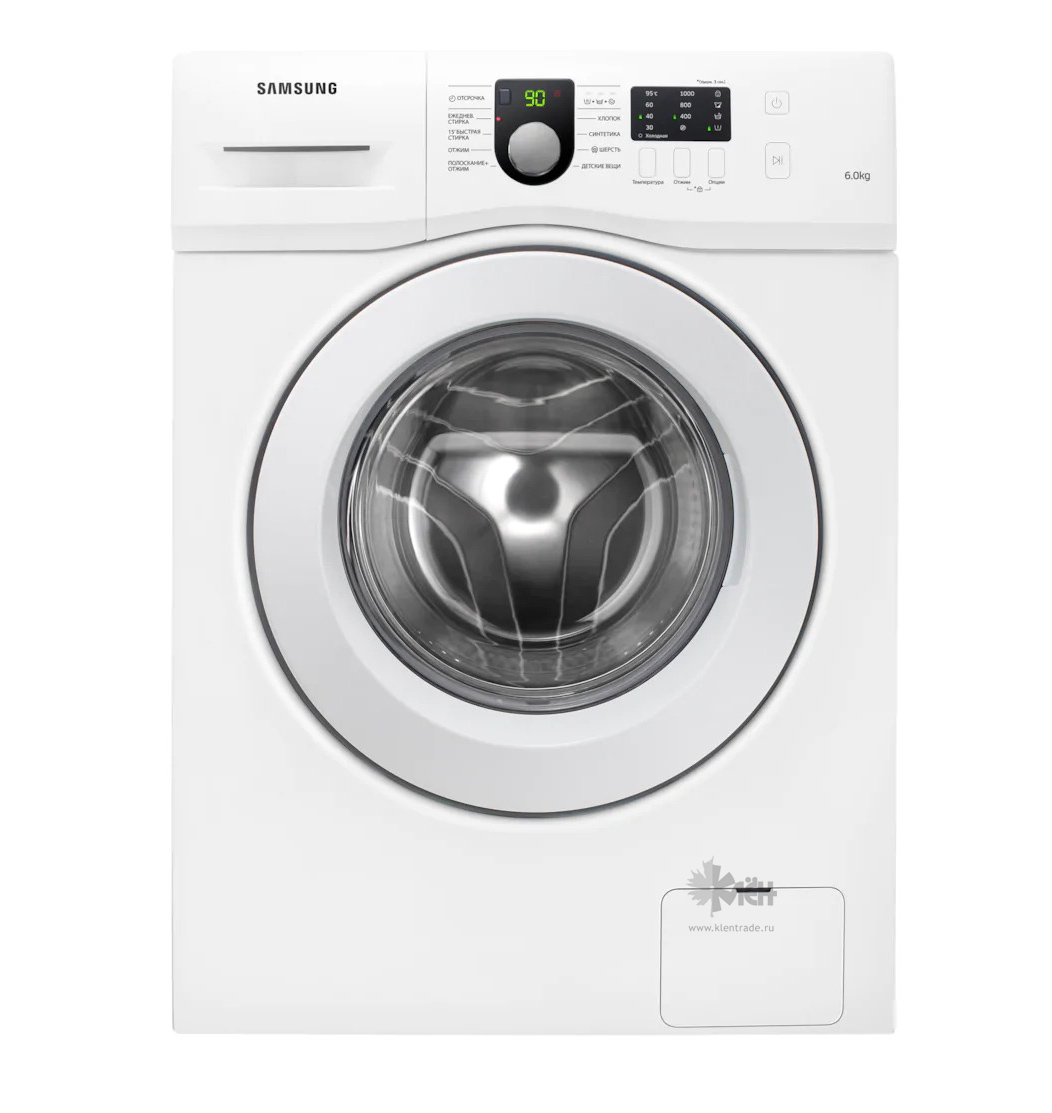 Стиральная машина SAMSUNG WF 60F1R0H0W обладает фронтальной загрузкой и способна вместить до 6 кг белья за один цикл работы, класс эффективности стирки данной модели A.