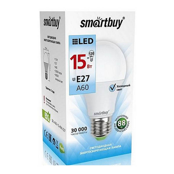 Лампа светодиодная Smartbuy LED E27/A60/15Вт/холодный/02761