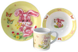 Характеристики Набор детский 3пр Зайка (тарелка,миска,кружка) 3-100