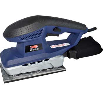Номинальная потребляемая мощность, Вт 250 Напряжение питающей сети, В 220 +/- 10% Частота питающей сети, Гц 50 +/- 5% Тип электродвигателя однофазный, коллекторный Класс машины II Габаритные размеры (без шнура питания, рабочего инструмента), не более, мм 280x95x170 Номинальная частота колебаний шлифовальной платформы на холостом ходу, кол/мин 11000 Размеры шлифовальной платформы, мм 187х97 Размеры шлифовальной шкурки, мм 240х97 Масса (без шнура питания и пылесборника), не более, кг 1,4 Машина ручная электрическая плоскошлифовальная МПШ-0,25 предназначена для шлифования изделий из различных материалов в бытовых условиях. 2. Функциональные возможности: обработка поверхностей древесины, пластмассы и металла чистовая и грубая шлифовка, полировка плоских поверхностей удаление ржавчины и лакокрасочных покрытий. 3. Машина предназначена для эксплуатации в районах умеренного климата, исполнение УХЛ, категория размещения 3.1 по ГОСТ 15150-69, при температуре окружающего воздуха от минус 15С до плюс 35С. 4. Режим работы машины S2-30 мин. Особенности и преимущества: Удобная прорезиненная рукоятка, обеспечивающая удобный хват и предотвращающая соскальзывание руки Быстрая смена шкурок и фиксация с помощью двух зажимов Система пылеудаления с возможностью подсоединения пылесборника (входит в комплект изделия) или пылесоса Фиксация во включенном положении для продолжительных работ Вентиляция и принудительный обдув двигателя охлаждает и предохраняет изделие от перегрева Небольшие габариты и малый вес Двойная изоляция для безопасности и возможности включения МПШ-0,25 в розетку без заземления