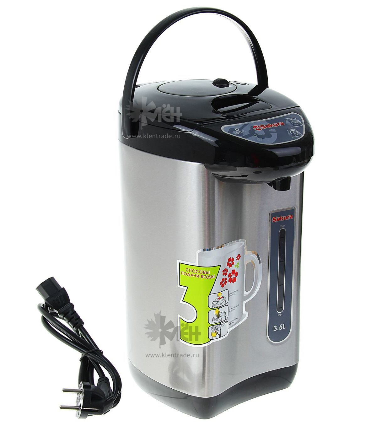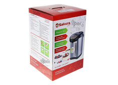 SAKURA SA-334BS - это термопот объемом 3,5 л и мощностью 750 Вт. Такой объем является оптимальным выбором для семьи. Прибор имеет функцию кипячения и поддержания температуры на уровне 85-90º градусов.