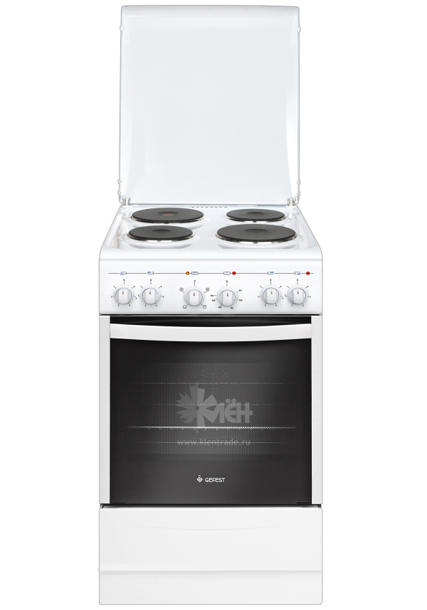 Электрическая плита Gefest 5140-01 представлена в классическом белом корпусе.