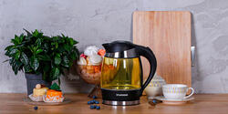 Корпус электрического чайника STARWIND SKG2215 выполнен из термостойкого стекла. Несомненно привлекает к себе внимание, благодаря оригинальному исполнению, дизайн в теплых тонах не оставит ни кого равнодушным.