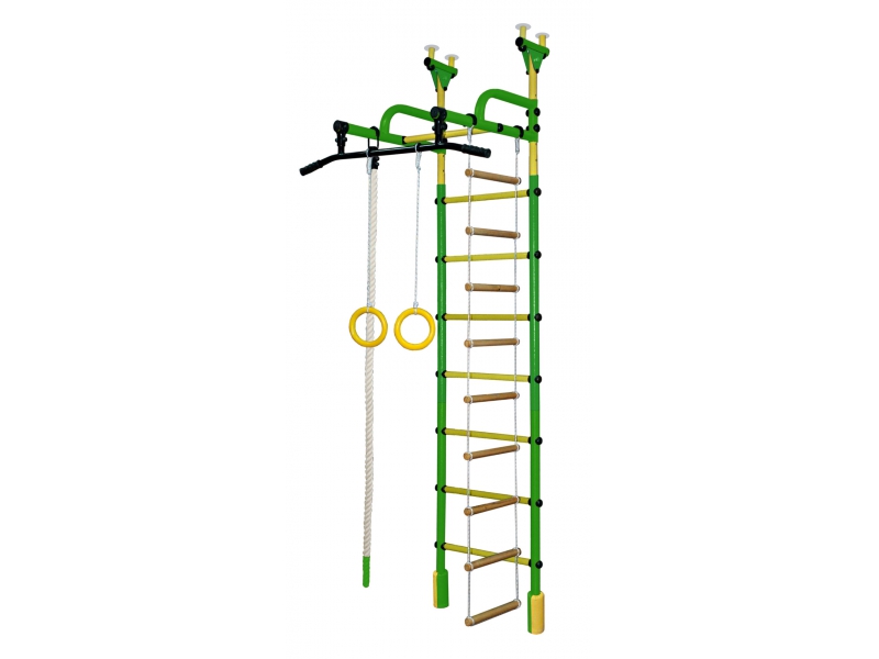 Пристенный | Распорный Комплектация Канат, Кольца, Веревочная лестница Ширина турника 950 мм Ширина перекладины 450 мм Высота комплекса от 2350-2935 мм Нагрузка на навесное оборудование max 80 кг Нагрузка на металлическую конструкцию max 100 кг Ширина комплекса 525 мм