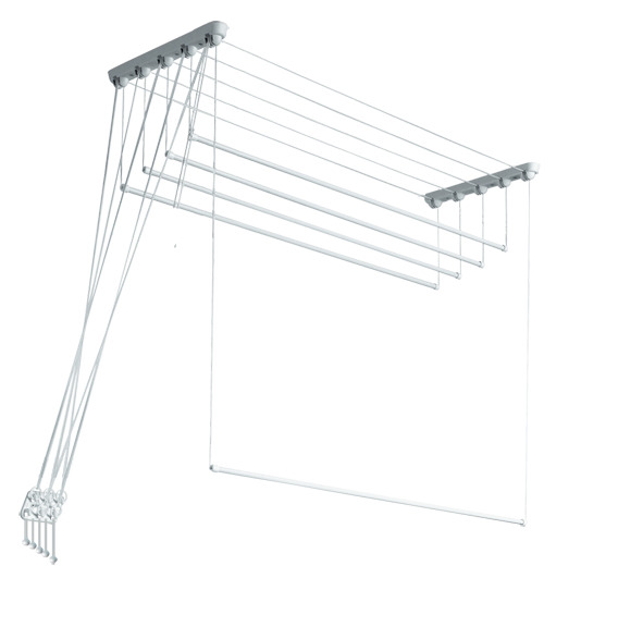 Крепление к потолку. Заменяет 6 м бельевой веревки. Общая нагрузка до 12 кг. Стержни фиксируются в двух положениях - сушки и снятие.
