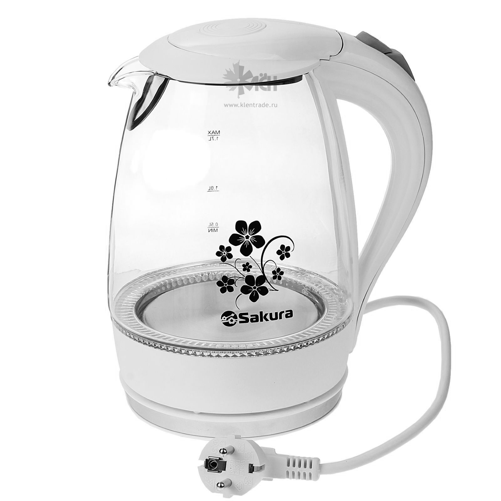 Подсветка особенно оживляет чайник SAKURA SA-2710W, в сочетании с рисунком прибор смотрится великолепно в любом интерьере. Подставка с возможностью поворота на 360 градусов делает эксплуатацию проще и комфортнее.