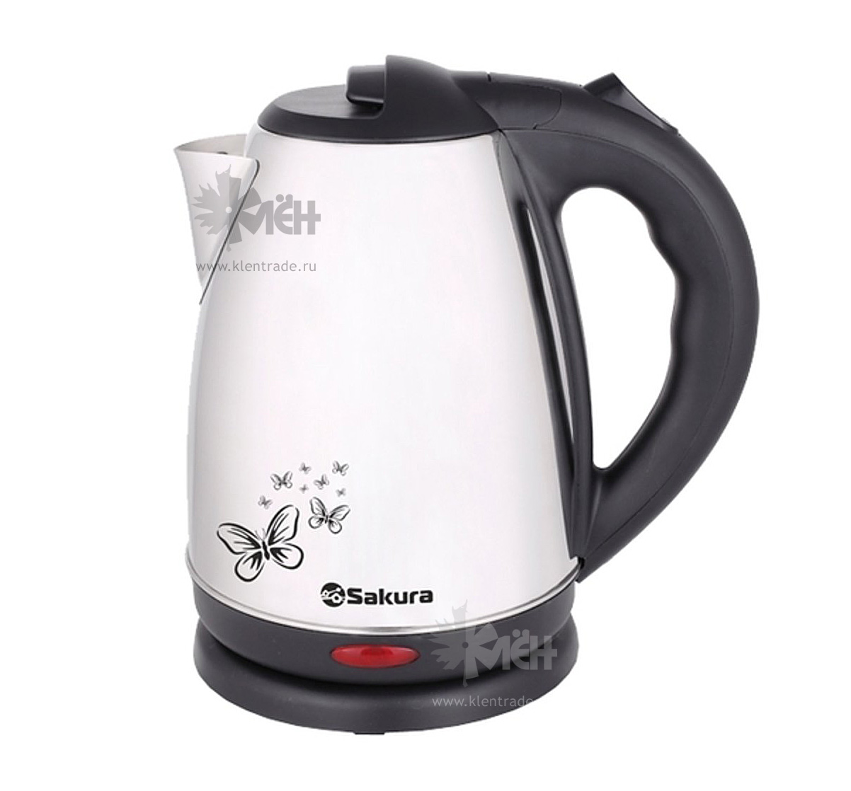 Чайник SAKURA дополняется удобной подставкой, которая не требует определенного положения техники. Прибор выполнен в серебристом матовом корпусе из нержавеющей стали с применением чёрного термостойкого пластика.